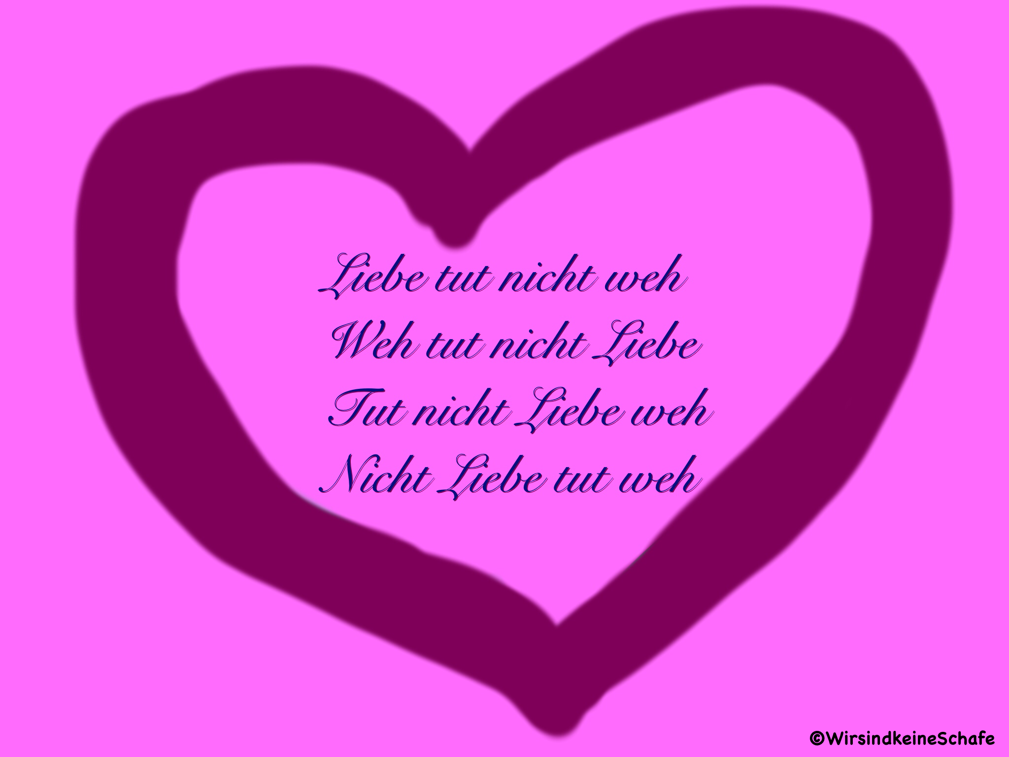 Wir sind so gewohnt nicht inne zu halten. Manchmal nehm ich mir daher die Zeit und denke tatsächlich über einen Satz nach. Horche in ihn rein. Lass ihn auf mich einwirken, anstatt ihn nur zu verwalten und abzuhaken. Und meistens merke ich dann, dass der Satz viel mehr bedeutet oder vielleicht was ganz anderes, als ich dachte, dass er bedeutet, als ich ihn nur so ganz schnell und aus dem Augenwinkel heraus gesehen hab. So ging es mir mit dem Satz „Liebe tut nicht weh“. Als ich darüber nachgedacht hab, hat der Satz plötzlich eine Ernsthaftigkeit entfaltet, die ich ihm nie zugetraut hätte. Das fand ich schön.