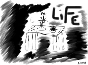 Sitzen wir an diesem schäbigen Tisch